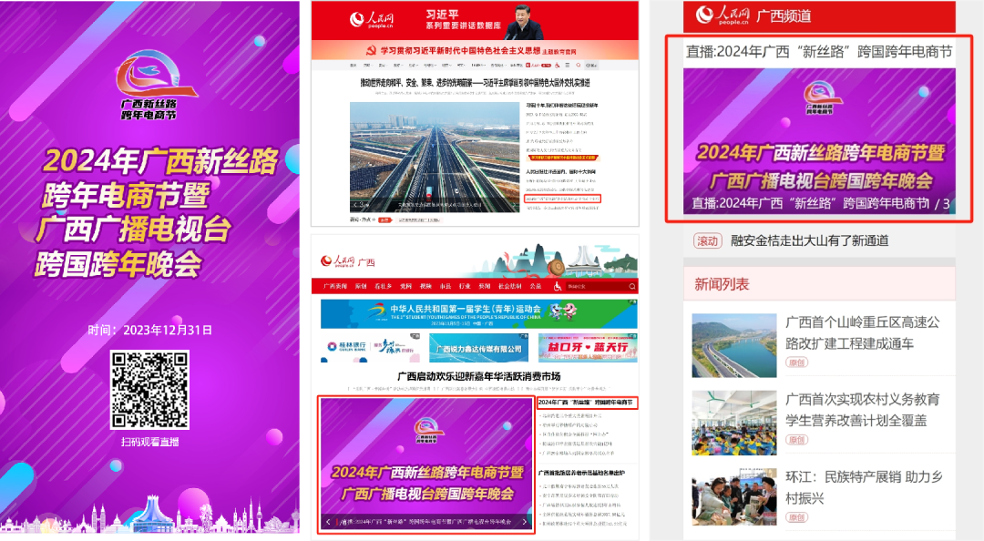 網羅八桂優品、東盟好物,共赴e場消費盛宴。由廣西壯族自治區商務廳聯合南寧市人民政府,聯動越南、柬埔寨、泰國、老撾、緬甸、馬來西亞駐南寧總領事館共同舉辦的2024年廣西新絲路跨年電商節暨廣西廣播電視臺跨國跨年晚會在國內主會場廣西南寧市中國—東盟特色商品匯聚中心(以下簡稱“匯聚中心”)、海外分會場老撾萬象國家文化宮同步精彩啟幕。