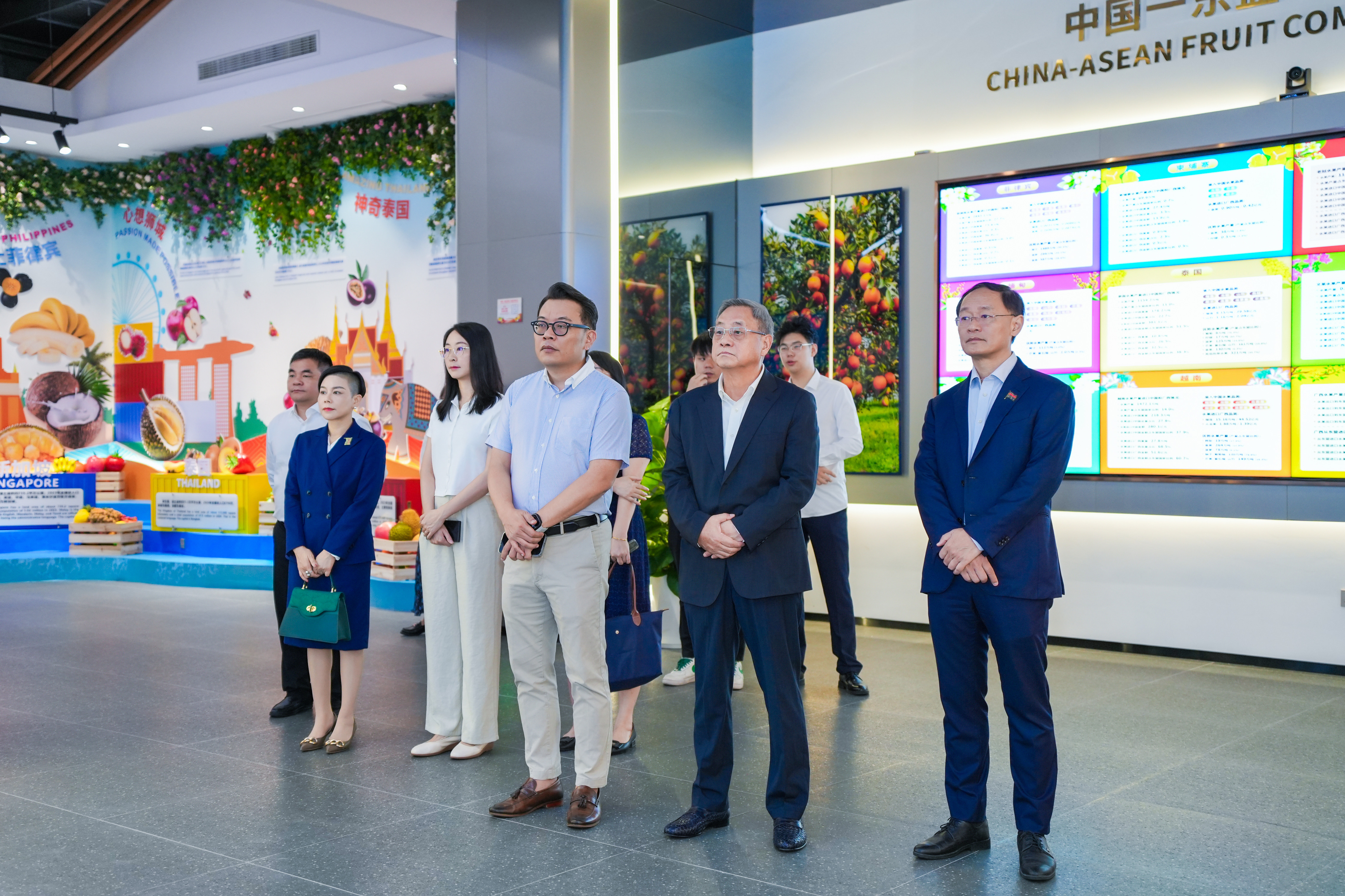 考察團還參觀了水果交易中心展廳,就中國與東盟水果貿易情況及項目規劃進行了溝通交流。考察團表示,隨著廣西與東盟經貿合作,特別是水果產業合作的持續深化,在廣西建設水果交易中心大有可為。柬埔寨也有很多特色水果,未來也希望能通過水果交易中心,高效銜接中國與東盟水果產業鏈資源,合作共贏。