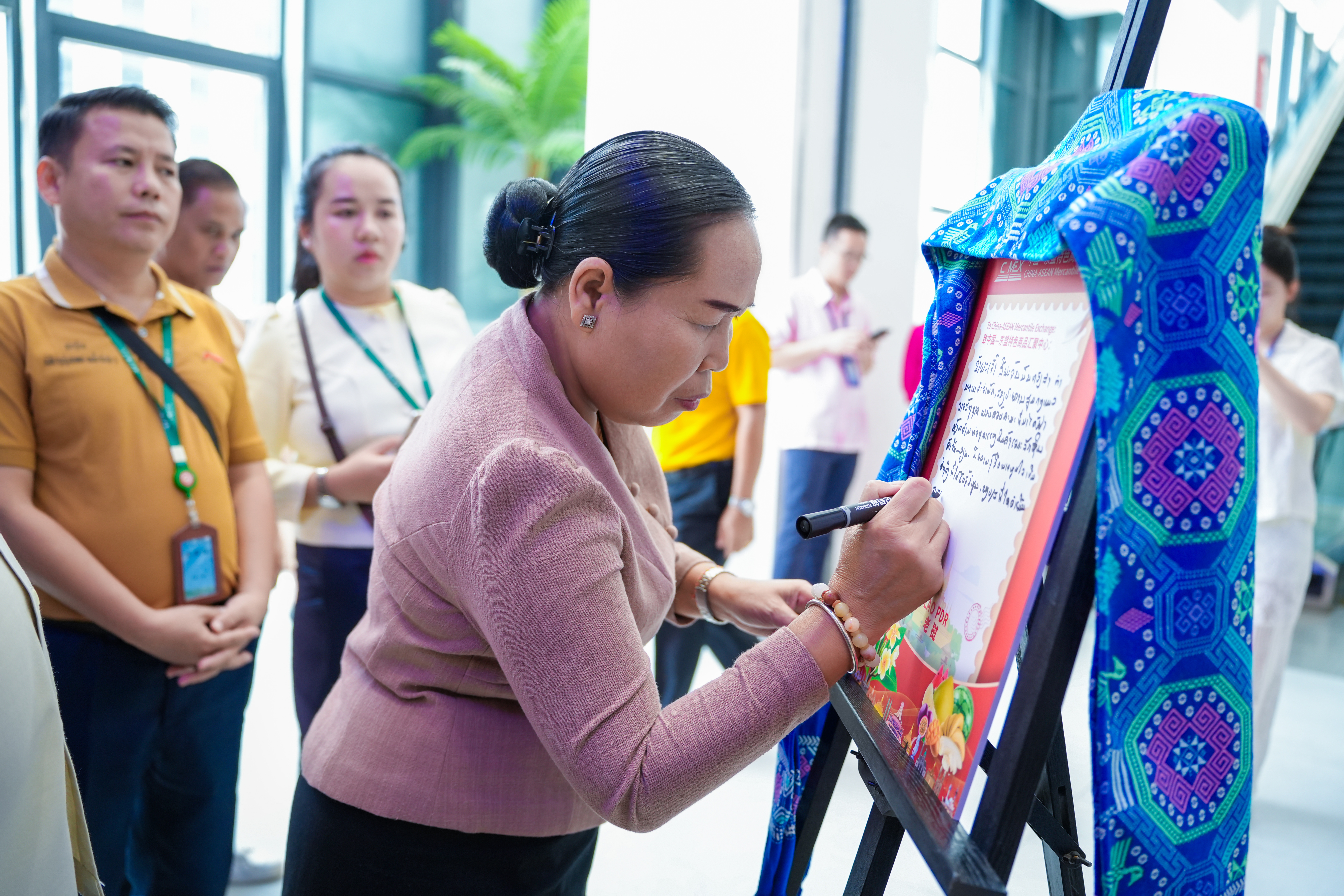 希帕占·南塔馮薩副主席在老撾館寫下了對匯聚中心的寄語,期待未來有更多的老撾特色商品進駐匯聚中心,并祝項目越來越好。