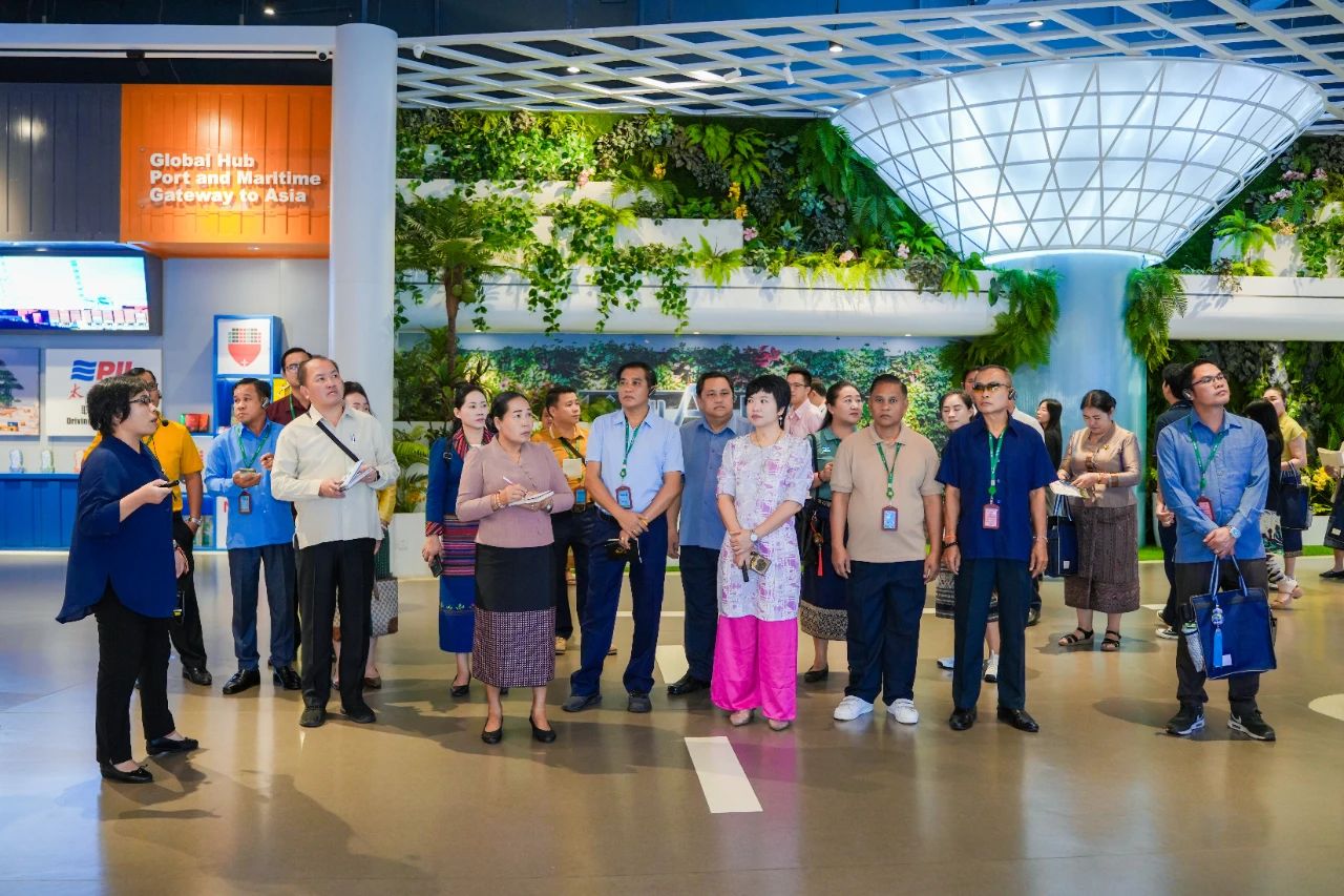 隨后,考察團來到匯聚中心實地參觀。在詳細了解其運營理念與設計初衷后,代表團對匯聚中心線上數字化平臺+線下展館沉浸式商貿體驗相結合的創新模式表示高度贊賞,并認為匯聚中心通過365天商品常態化展銷,實現“永不落幕的中國—東盟博覽會”,進一步拓展了中國與東盟、RCEP區域乃至“一帶一路”沿線重要國家之間的經貿合作空間。