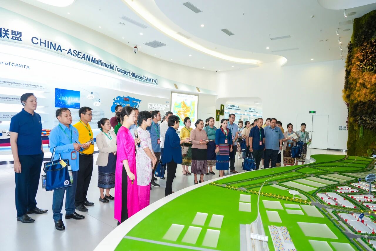 2025年8月27日,老撾建國陣線中央副主席、紀委書記希帕占·南塔馮薩率政府考察團到中新南寧國際物流園(簡稱“中新物流園”)、中國—東盟特色商品匯聚中心(簡稱“匯聚中心”)和中國—東盟水果交易中心(簡稱“水果交易中心”)進行參觀交流,廣西新中產業投資有限公司、中國—東盟特色商品匯聚中心董事長趙海燕熱情接待了考察團。