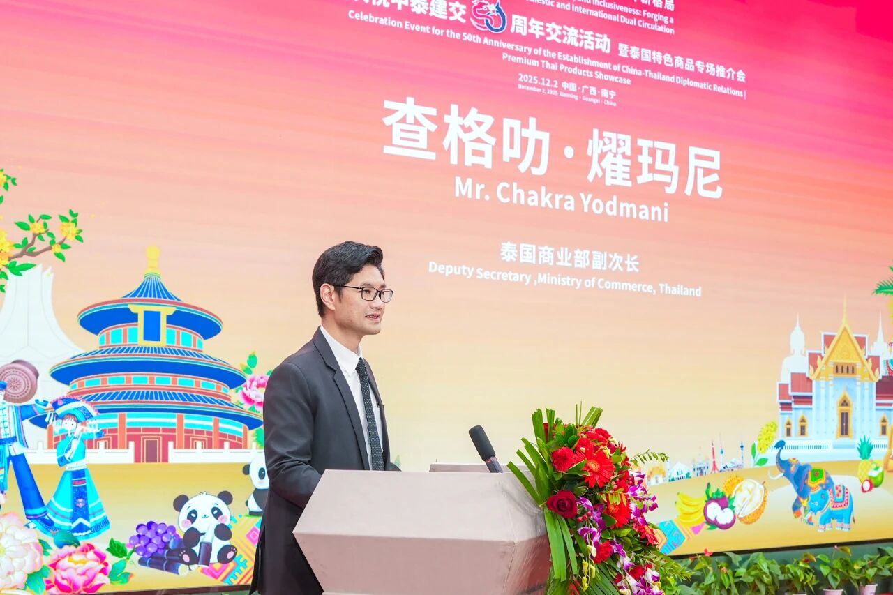 12月2日,“親誠惠容·共拓內外貿雙循環新格局——慶祝中泰建交50周年交流活動暨泰國特色商品專場推介會”在中國—東盟特色商品匯聚中心隆重舉辦。本次活動由泰國商業部、泰國商業部國際貿易促進司、中國國際貿易促進委員會廣西壯族自治區分會、中國—東盟商務理事會聯席秘書處、中國—東盟特色商品匯聚中心(簡稱“匯聚中心”)聯合主辦,中國國際商會廣西商會、中國檢驗認證集團廣西有限公司、廣西達譯科技有限公司、邁越科技股份有限公司、方圓標志認證集團廣西有限公司作為支持單位參與此次活動。